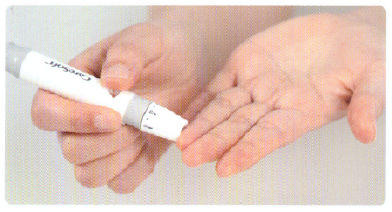 3. 채혈기는 1단계에서 5단계까지 깊이 조정이 가능하며 숫자가 커질수록 채혈 깊이가 깊어집니다. 깊이 조정을 마친 후 채혈기 장전을 완료합니다.