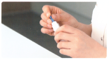 2. 채혈기를 준비한 후 채혈기에 채혈침을 꽂고 채혈침의 뚜껑을 제거합니다.