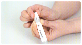 2. 채혈기를 준비한 후 채혈기에 채혈침을 꽂고 채혈침의 뚜껑을 제거합니다.