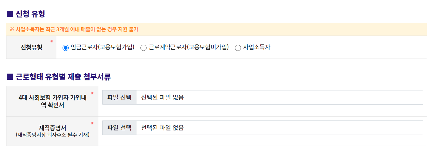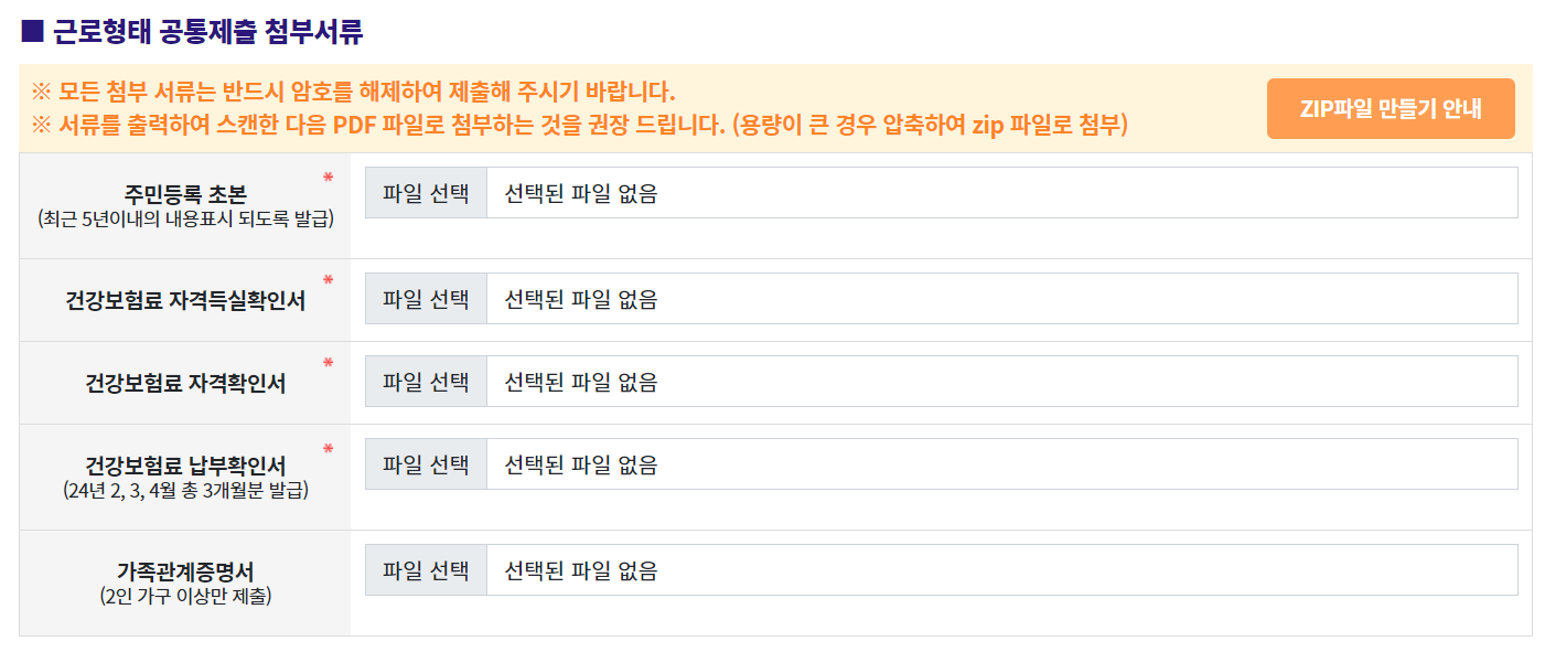 신청서 작성 시 제출해야될 서류가 많아 미리 준비하는 것이 좋습니다.