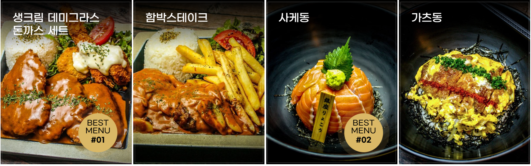 모든 메뉴를 한 번씩 다 먹어 봤는데요 돈까스, 사케동, 오야꼬동, 명란크림 우동을 추천드립니다. 우동종류는 단맛이 제 입맛에는 잘 맞지 않았습니다. 우동을 시키실 분들은 참고하세요.