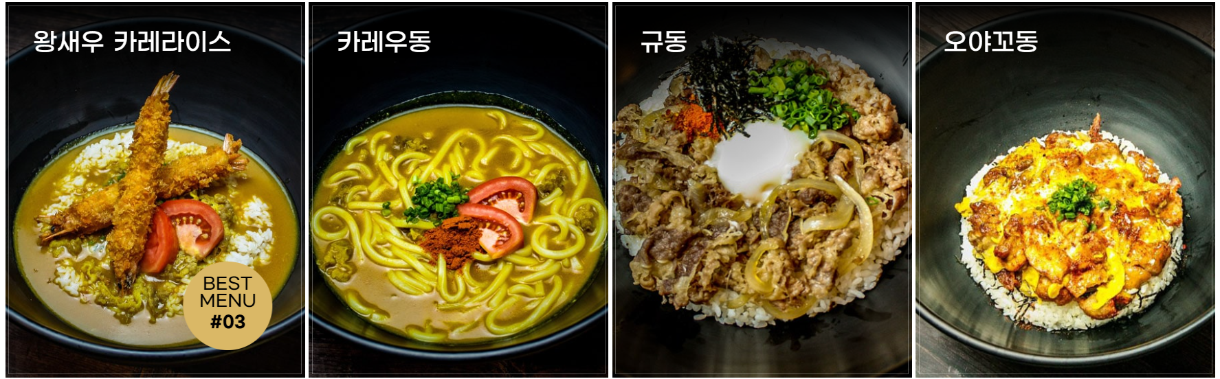 모든 메뉴를 한 번씩 다 먹어 봤는데요 돈까스, 사케동, 오야꼬동, 명란크림 우동을 추천드립니다. 우동종류는 단맛이 제 입맛에는 잘 맞지 않았습니다. 우동을 시키실 분들은 참고하세요.