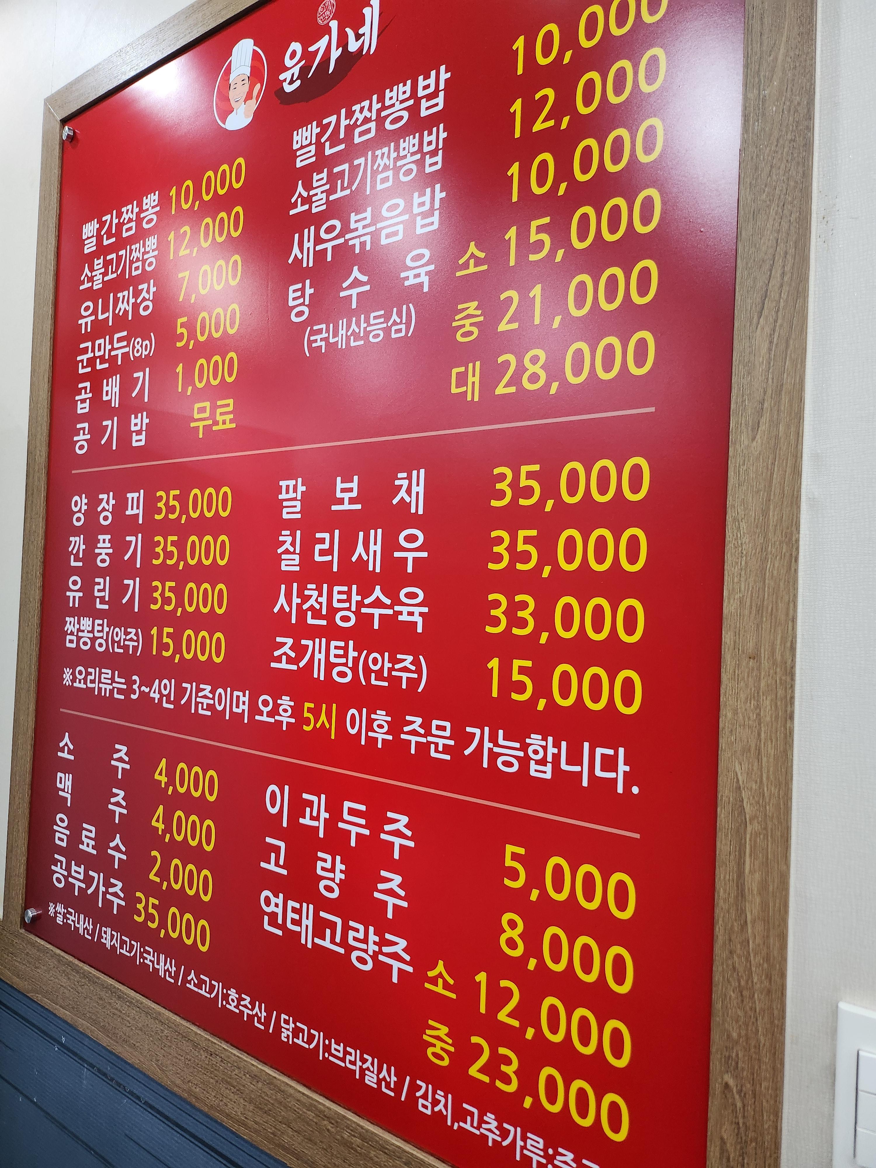 윤가네짬뽕의 대표메뉴 입니다. 이 짬뽕때문에 손님들이 많습니다. 면도 쫄깃하고 국물이 시원합니다. 다른 짬뽕집과 달리 짜고 매운맛이 적어서 자극적이지 않고 담백하고 깔끔한 맛입니다. 그리고 다른 가게는 홍합을 많이 쓰는데 여기는 동죽을 씁니다. 저는 동죽이 더 맛있는거 같더라구요. 처음가신다면 일단 빨간짬뽕을 먼저드셔보시길 추천드립니다.