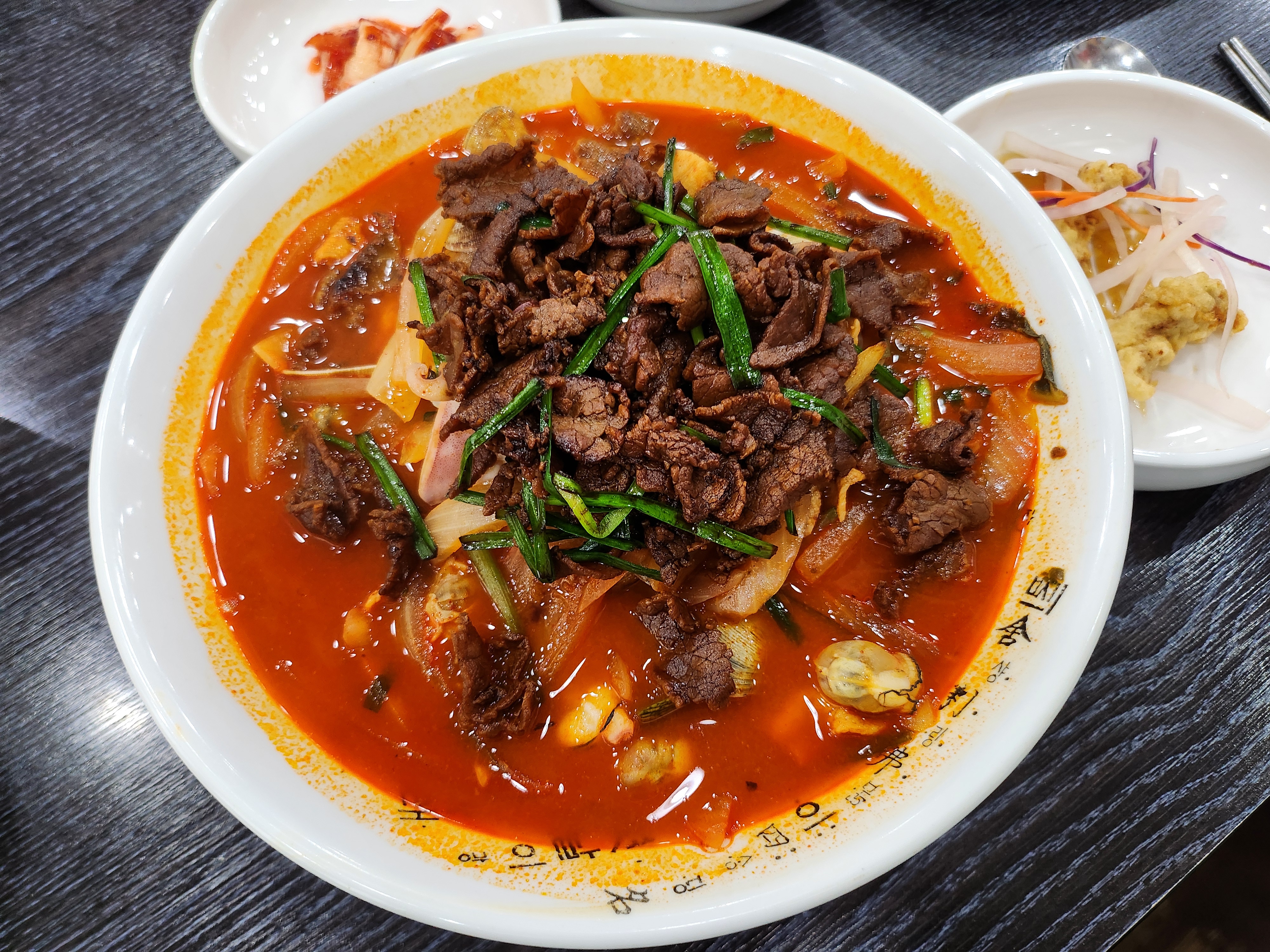 또 다른 대표메뉴긴 한데요. 호불호가 많이 갈립니다. 일단 고기 좋아하시는 분들이라면 좋아합니다만 빨간짬뽕의 담백하고 깔끔한 맛하고 완전 반대입니다. 고기 특유의 맛이 짬뽕 고유의 맛을 많이 눌러주기때문에 우리가 상상하는 짬뽕의 맛을 좋아하는 분들에게는 비추합니다. 그래도 고기를 좋아하시는 분들에게는 좋은 선택지가 될것입니다.