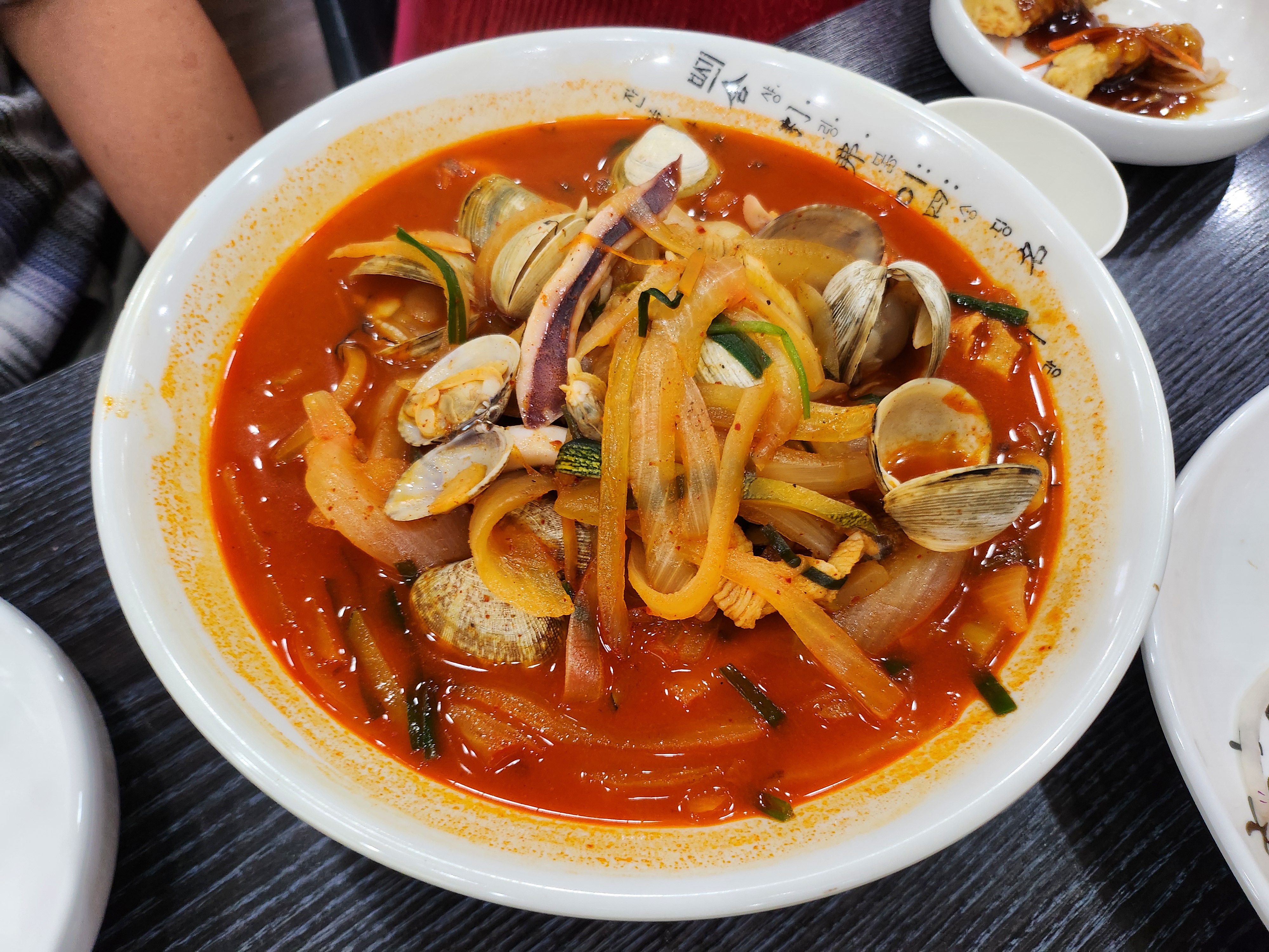 윤가네짬뽕의 대표메뉴 입니다. 이 짬뽕때문에 손님들이 많습니다. 면도 쫄깃하고 국물이 시원합니다. 다른 짬뽕집과 달리 짜고 매운맛이 적어서 자극적이지 않고 담백하고 깔끔한 맛입니다. 그리고 다른 가게는 홍합을 많이 쓰는데 여기는 동죽을 씁니다. 저는 동죽이 더 맛있는거 같더라구요. 처음가신다면 일단 빨간짬뽕을 먼저드셔보시길 추천드립니다.