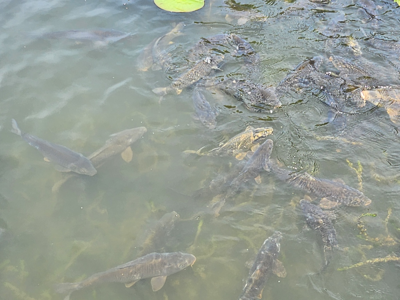 그리고 다리를 지나가다가 과자 같은거 하나 던져주면 팔뚝한만 물고기 들이 모여듭니다.