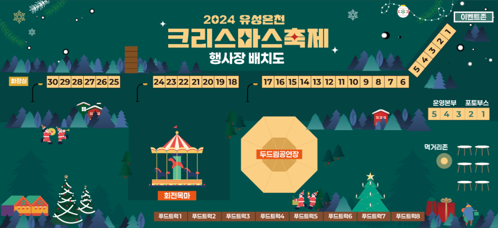 대전 유성에서 유성온천 크리스마스 축제가 열립니다. 유명한 가수들의 공연, 아이들과 함께 즐길 수 있는 체험존, 멋지고 아름다운 드론라이트쇼와 트리 점등행사가 준비되어 있으니 참여하셔서 즐거운 시간이 되시길 바랍니다.