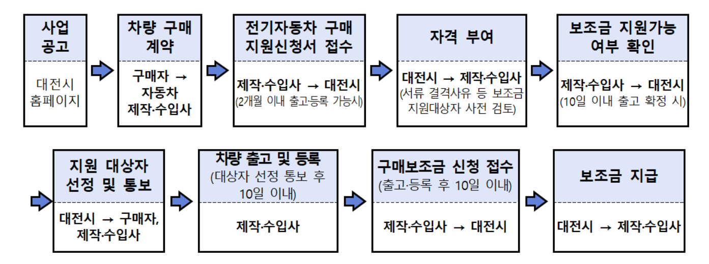 ※ 구매자는 차량구매대금과 보조금의 차액을 자동차 제작·수입사에 납부하고, 자동차 제작 ·수입사는 대전시로부터 보조금 수령