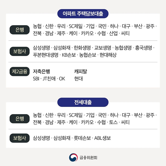 Ⅴ 개인(가계)이 대환대출 인프라 참여 금융회사로부터 받은 신용대출, 아파트 주택담보대출 및 보증부 전세자금대출을 갈아탈 수 있습니다.