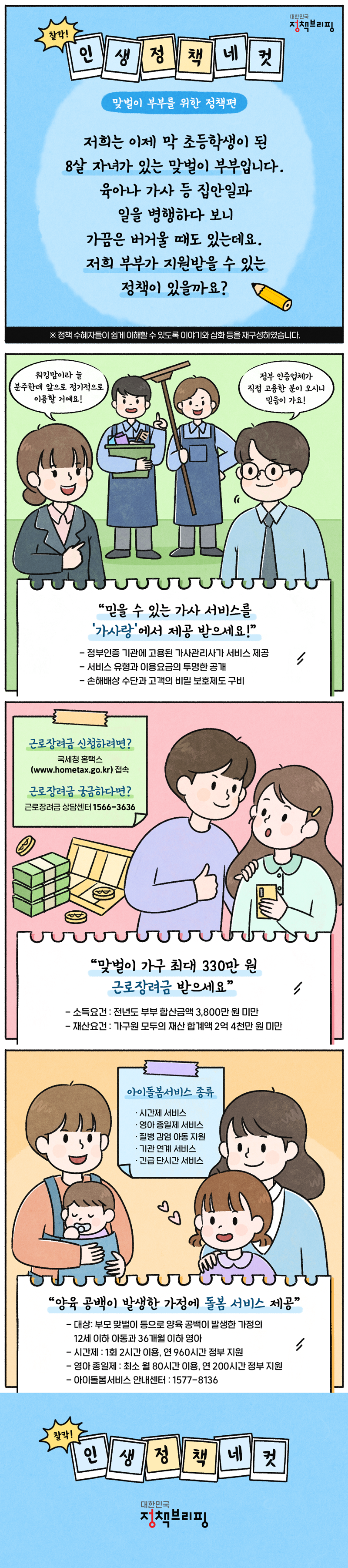 맞벌이 부부 정부 지원 - 근로장려금, 양육 돌봄 서비스