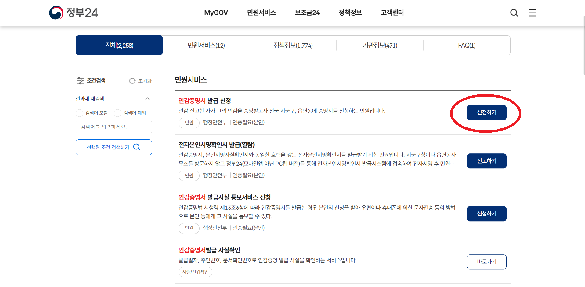 4. 인감증명서 신청하기 클릭