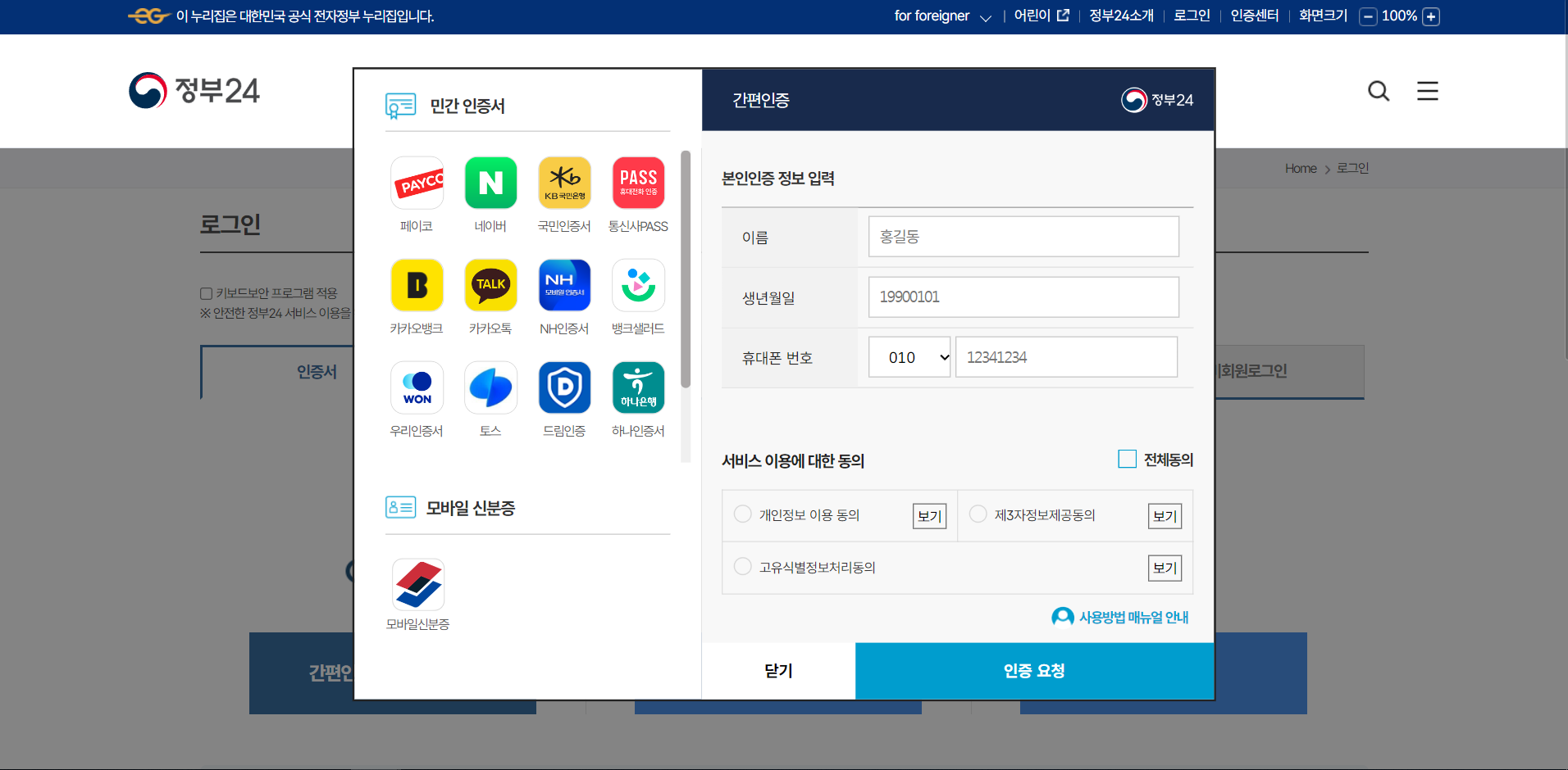 2. 본인인증 (간편인증 추천)