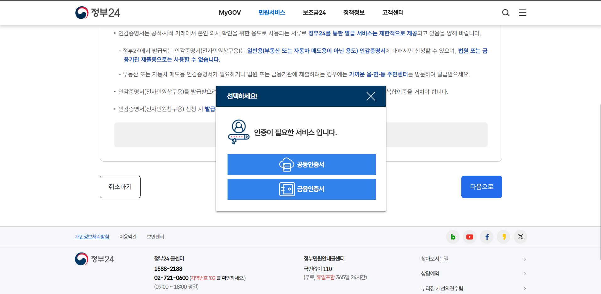 6. 공동인증서나 금융인증서가 필요합니다.