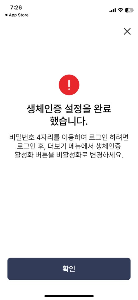 2. 문자받은 후 비밀번호 설정, 생체인증 설정 완료하기