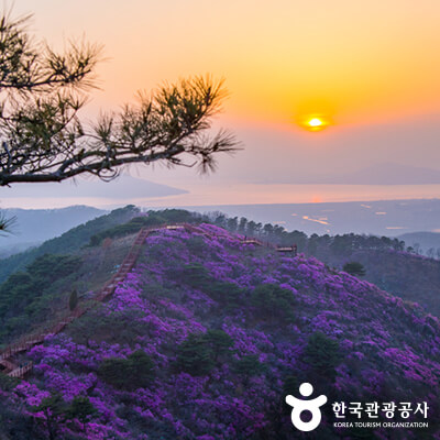 특히, 남해안의 푸른빛과 진달래의 분홍빛이 어우러진 풍경을 만나볼 수 있으며, 산을 둘러싼 도로가 산 중턱까지 이어져 있어 가벼운 산행을 즐길 수 있습니다. 연분홍빛의 꽃 물결이 장관을 이루는 이곳에서 포근한 봄의 기운을 느껴보세요.