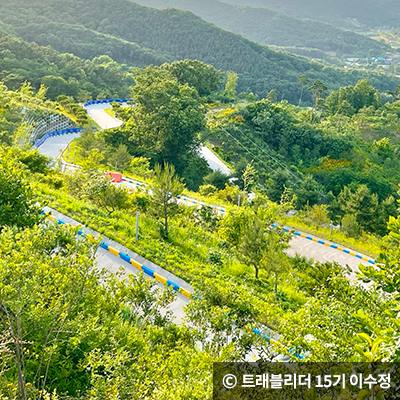 밸리코스는 직선 구간에서 스피드를 즐길 수 있으며 오션코스는 곡선 구간에서 장애물을 피하며 짜릿한 라이딩을 경험할 수 있어요. 특히 오션코스는 이름에 걸맞게 루지를 타고 내려오며 멀리 보이는 바다를 조망할 수 있습니다.