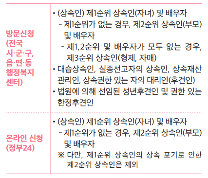 신청기한 : 사망일이 속한 달의 말일부터 1년 이내