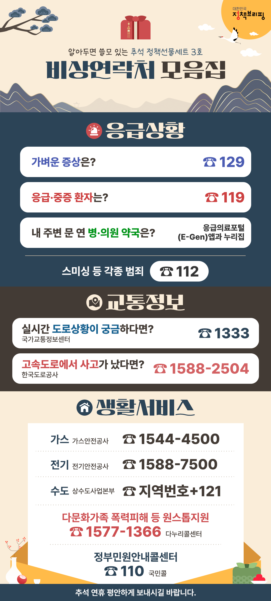 오늘은 추석 연휴에도 정상운영하는 비상연락처를 소개해 드리겠습니다.