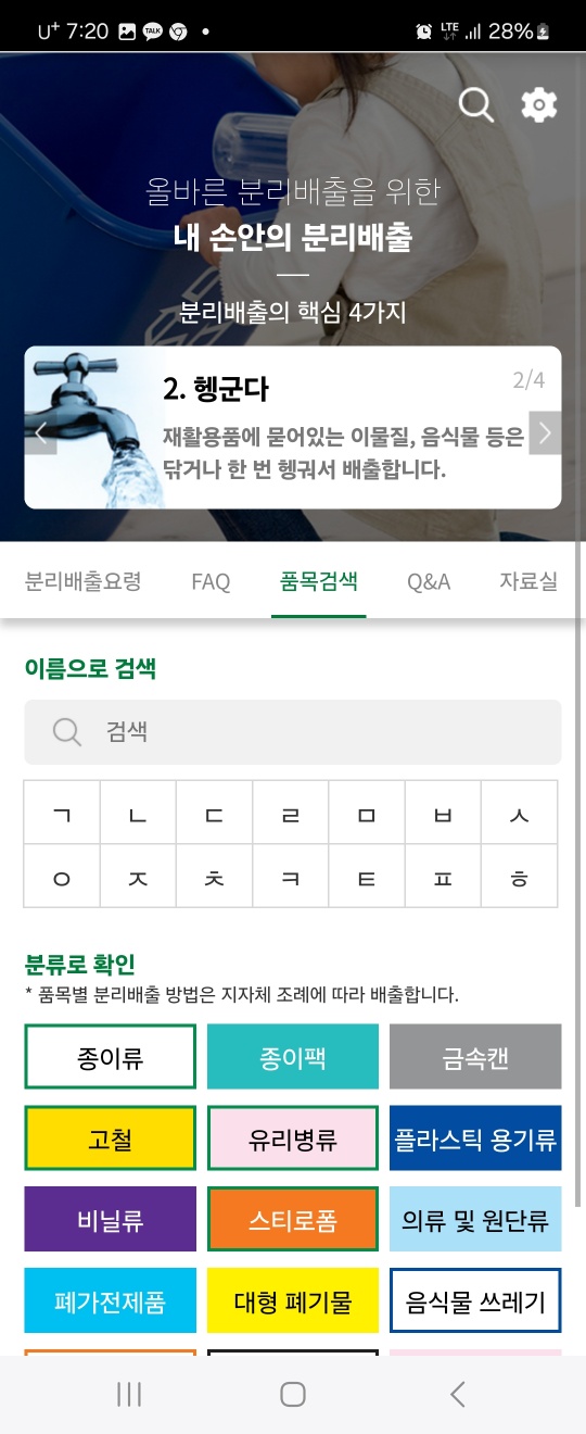 내손안에 분리배출 : 분리배출요령에서 찾아볼 수 있고 품목검색에서 직접 검색하면 됩니다.