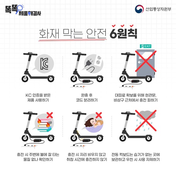 ⑥ 전동 킥보드는 습기가 없는 곳에 보관하고 우천 시 사용 자제하기