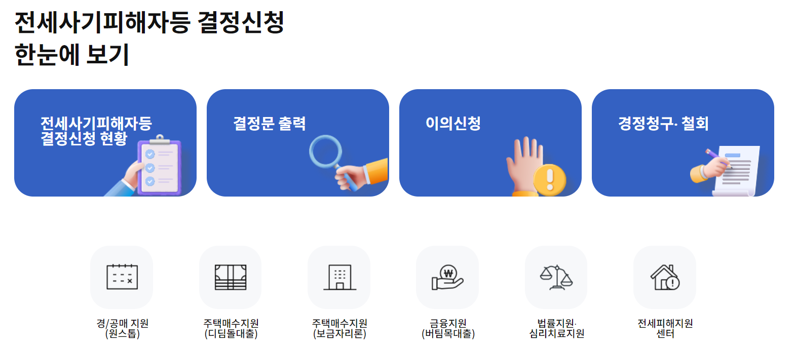 전세사기피해자 결정신청 및 진행상황 확인 예시화면.