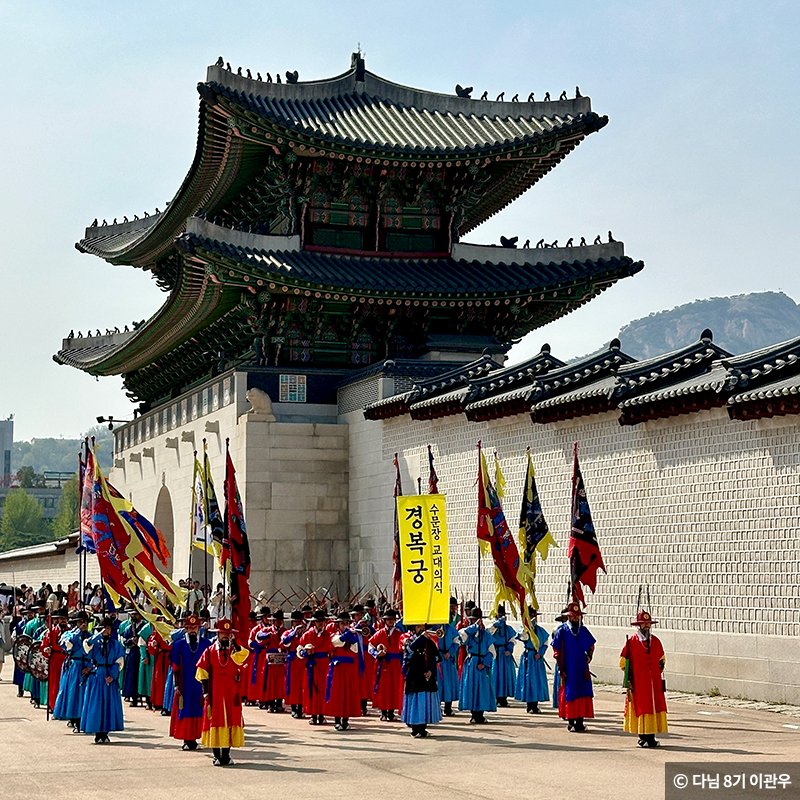 광화문과 흥례문 광장 사이에서 약 20분동안 진행되는 수문장 교대의식은 다양한 악기 연주가 함께 진행되어 눈과 귀가 모두 즐거운 시간을 보낼 수 있는데요.
