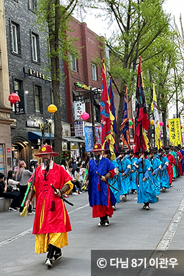 동선은 광화문 광장에서 시작해 인사동 문화의 거리, 인사동 네거리까지 이어지며 다시 광화문 광장으로 돌아오는데요. 돌아오는 길에는 안국역 6번 출구인 북인사 마당에서 기념 촬영 시간도 있어 웅장한 순라의식의 모습을 간직할 수 있습니다.