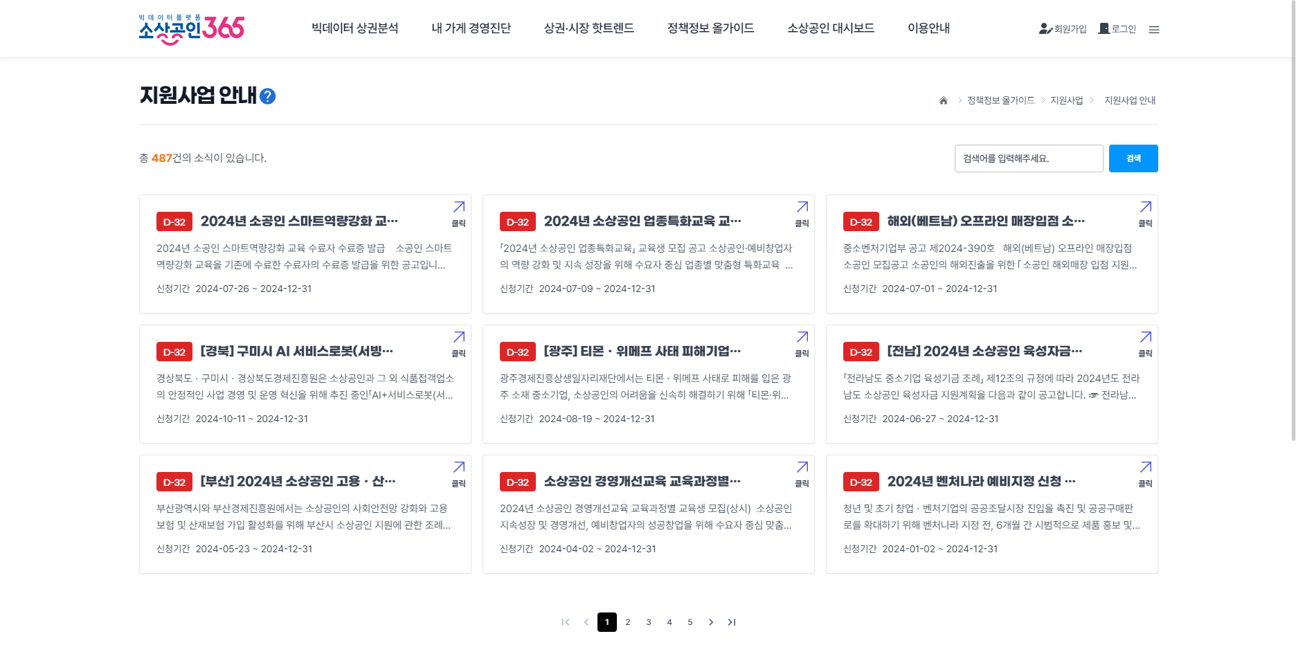 ◎ 소상공인을 위한 정부 지원사업 정보를 통합적으로 제공하며, ‘소상공인 24’와 연계된 기능으로 편리한 접근이 가능합니다.