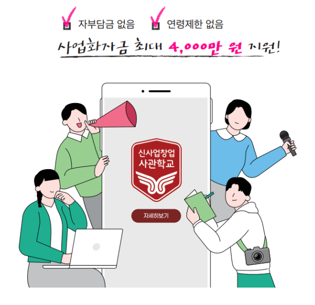 [신사업창업사관학교]에서 무료 창업 교육과 자금을 지원받을 수 있습니다~!!