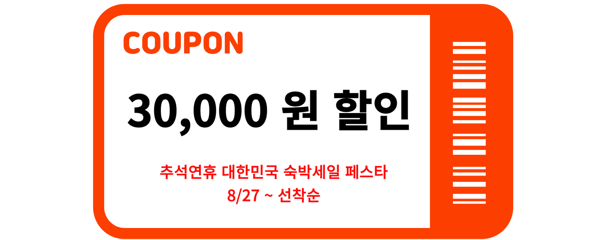 추석연휴 여행 숙박비 3만원 할인쿠폰!! 선착순!! 사용방법
