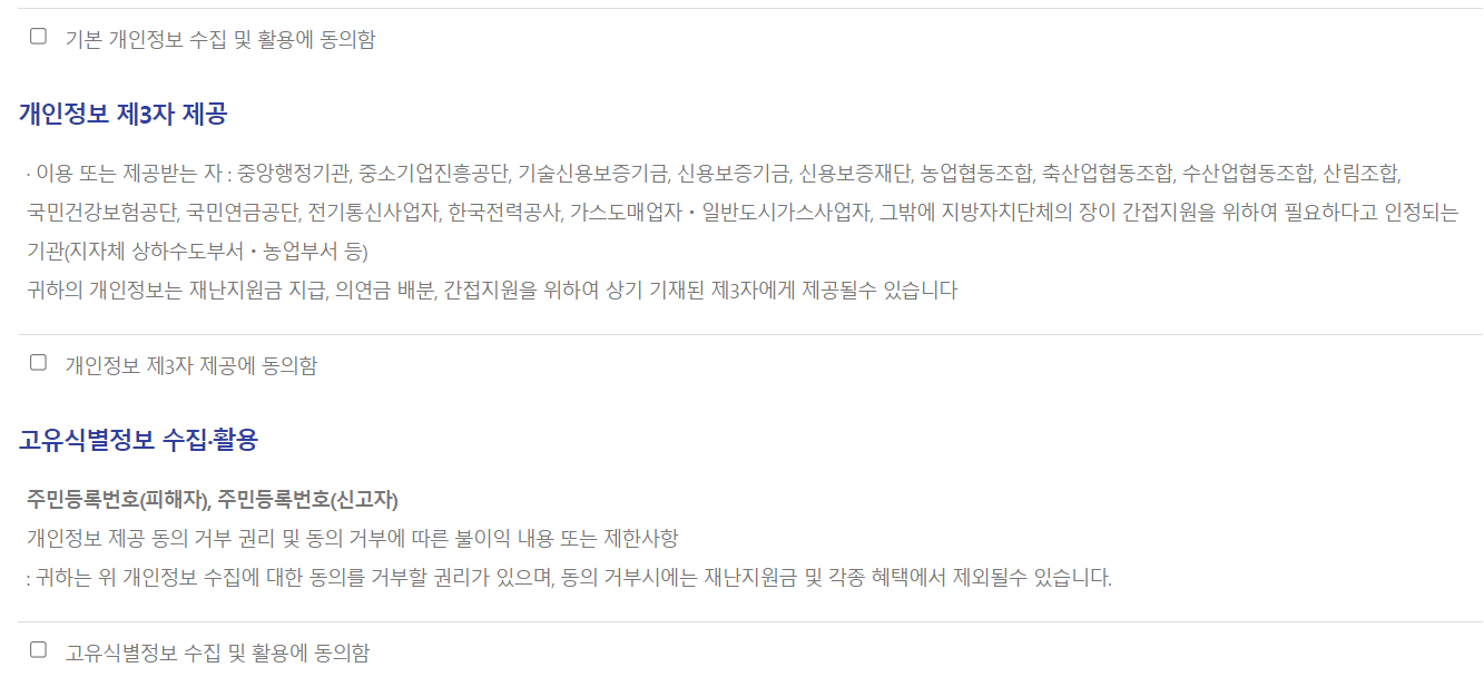 재난선택 ≫ 개인정보동의 ≫ 신규등록 ≫ 기본정보입력 ≫ 피해정보입력