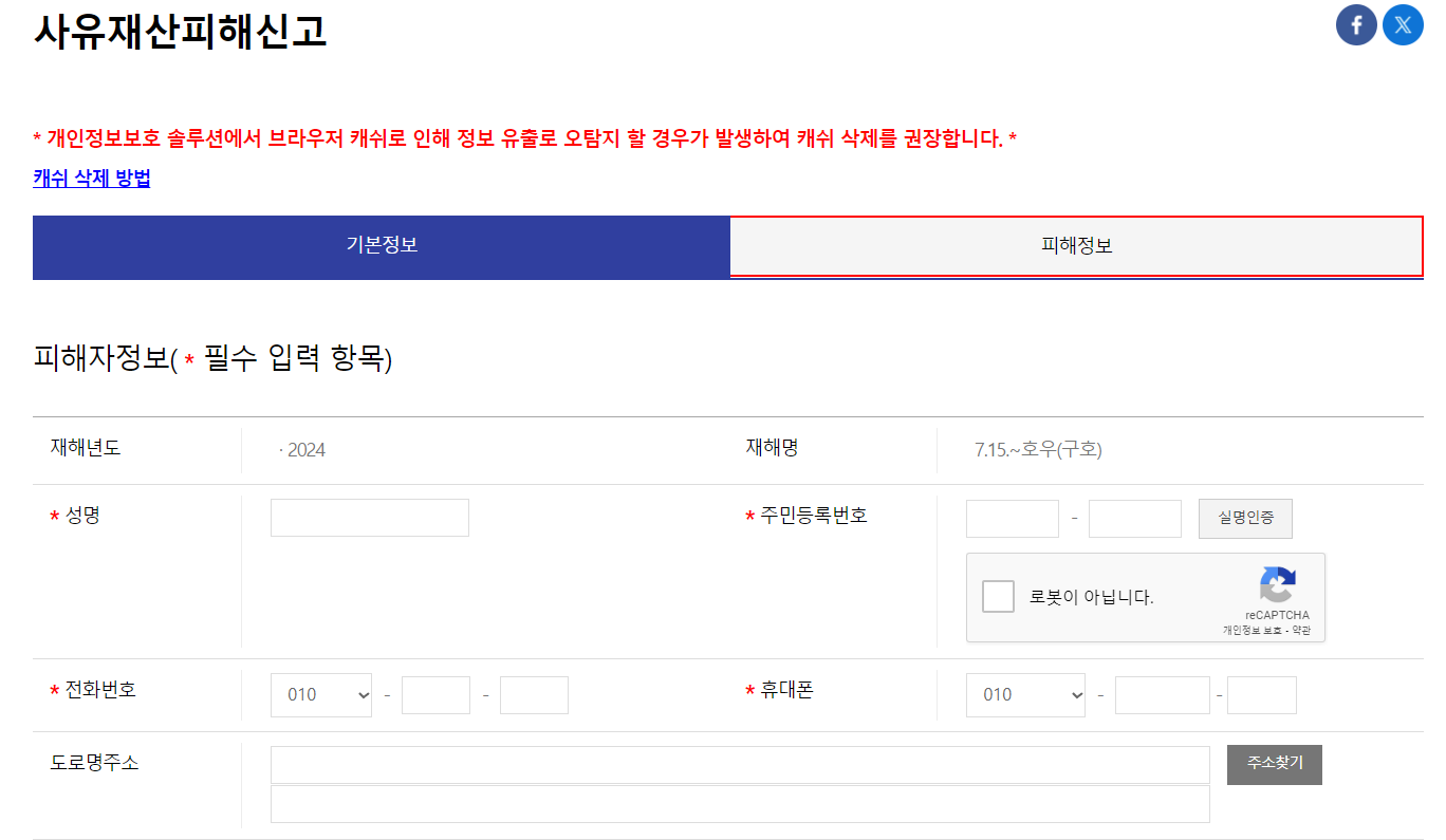 호우 피해 관련 피해신고서 접수 방법