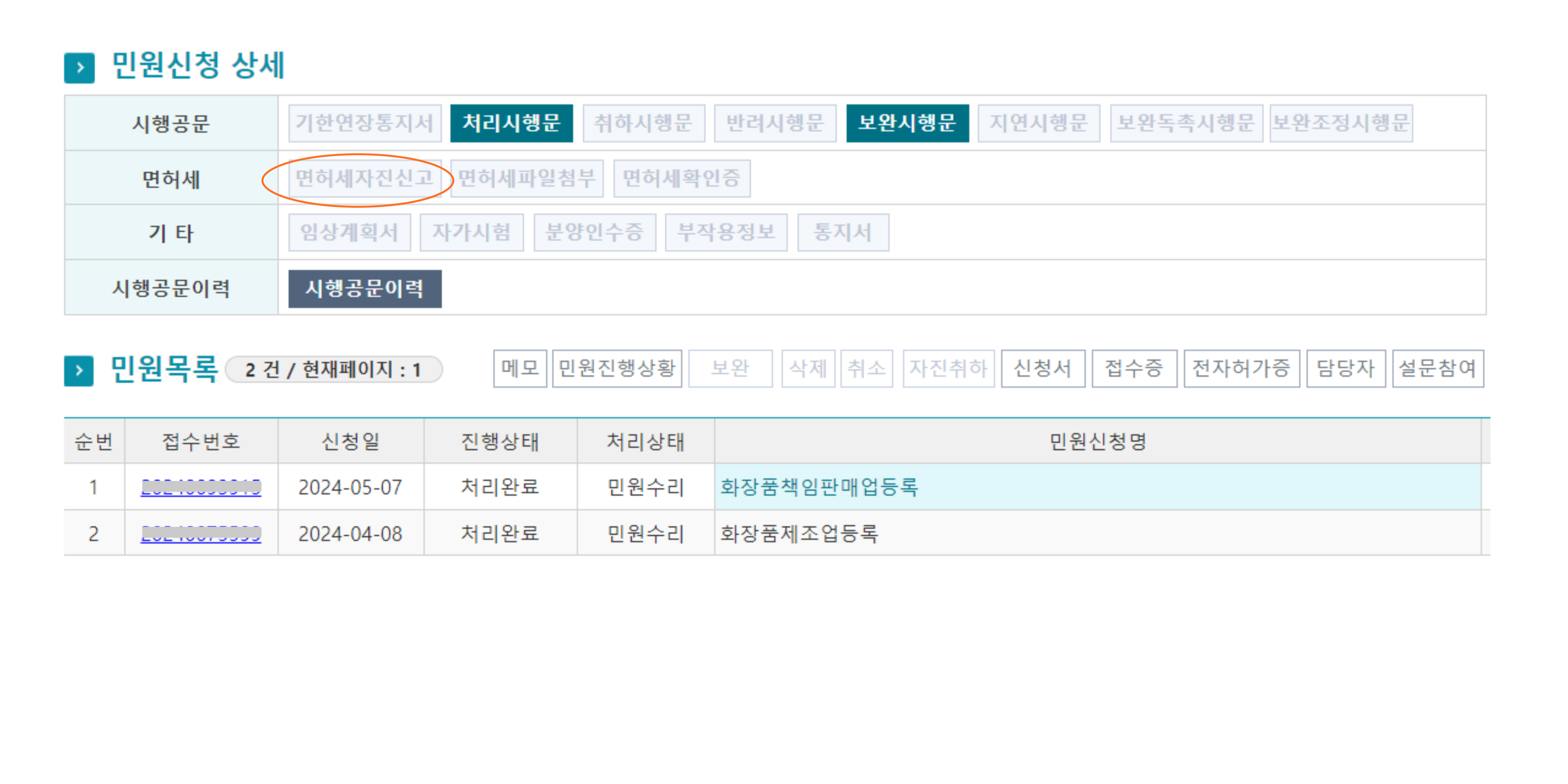 화장품 비누공방 제조업과 책임판매업의 식약청 민원 심사가 끝나고 처리완료 상태가 되면 면허세를 내는 단계로 옵니다.
