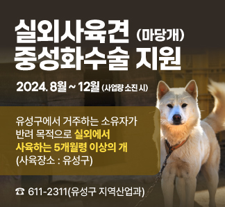 대전광역시 유성구에서 실외에서 기르는 마당개들을 대상으로 중성화수술을 지원합니다. 이 사업은 유기견 발생을 줄이고, 동물 복지를 향상시키기 위한 목적으로 시행됩니다. 중성화 수술을 통해 실외에서 사육되는 반려견의 개체 수를 조절하고, 더 나은 관리 환경을 제공합니다.