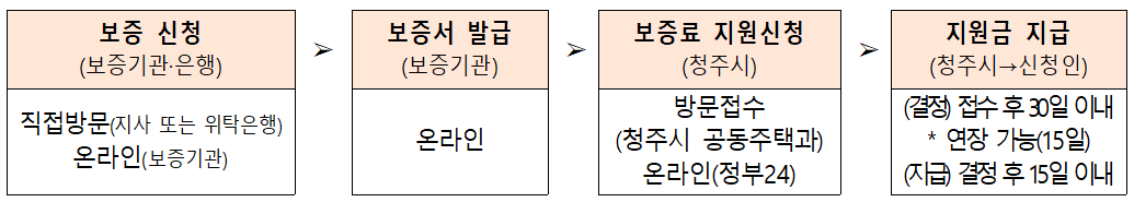 □ 지원대상 : 신청일 기준 보증 효력이 유효한 아래 기관의 전세보증금반환보증에 가입한 주민등록상 청주시 거주 무주택자 [신청인·배우자 모두 무주택(분양권 또는 입주권 포함)자 이어야 함]