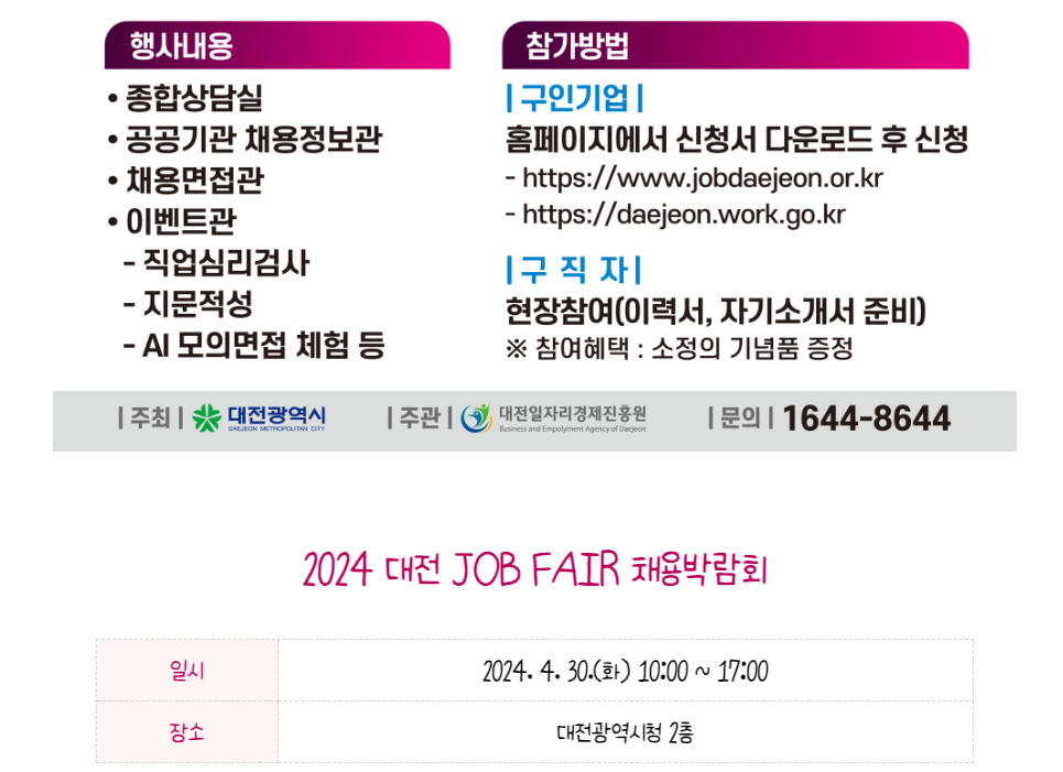 2024 대전 JOB Fair 채용 박람회 - 일자리 지원 채용