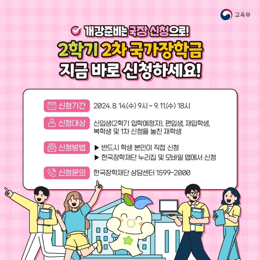 개강준비는 국장으로! 2학기 2차 국가장학금 지금 바로 신청하세요!