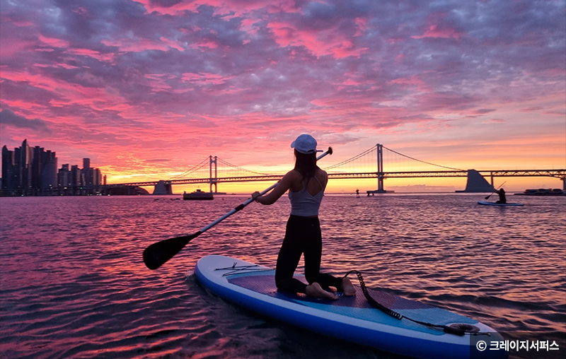 광안리해수욕장 내 약 500m에 이르는 구간에는 광안리 SUP Zone이자리한다. 보드 위에 서서 노를 저어 타는 SUP(Stand Up Paddleboard)는 안전하면서도 재미있는 친환경 해양스포츠다. SUP의 매력은 초보자도 자연속에 오롯이 스며들어 힐링의 시간을 보낼 수 있다는 점이다. 광안리해수욕장에서의 SUP는 더욱 특별하다. 바다를 배경으로 환상적인 일출·일몰을 감상하기에 이만한 해변이 있을까.