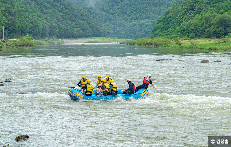 강원평창어름치마을. 동강래프팅을 즐기는 사람들. (사진 = 김정흠 촬영)